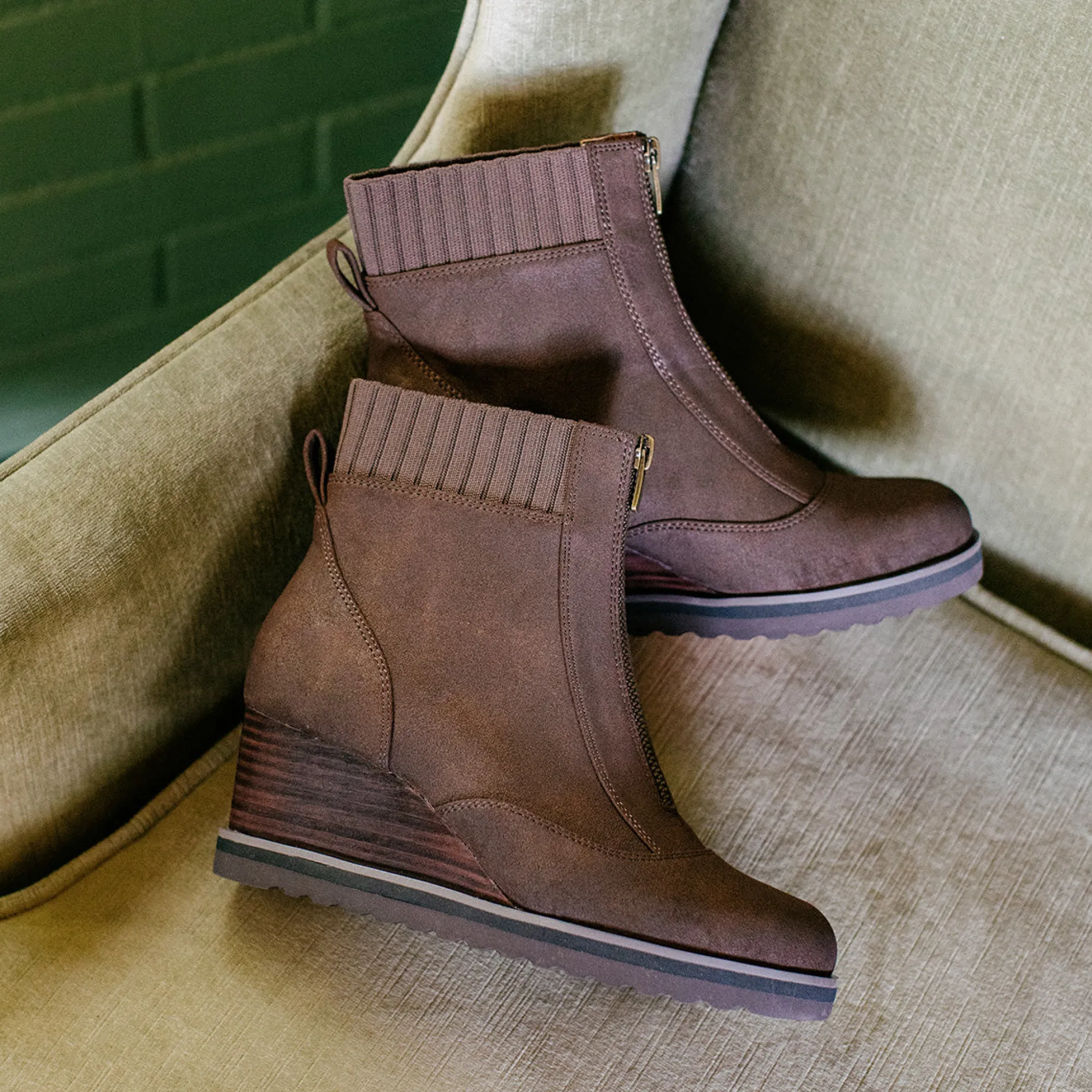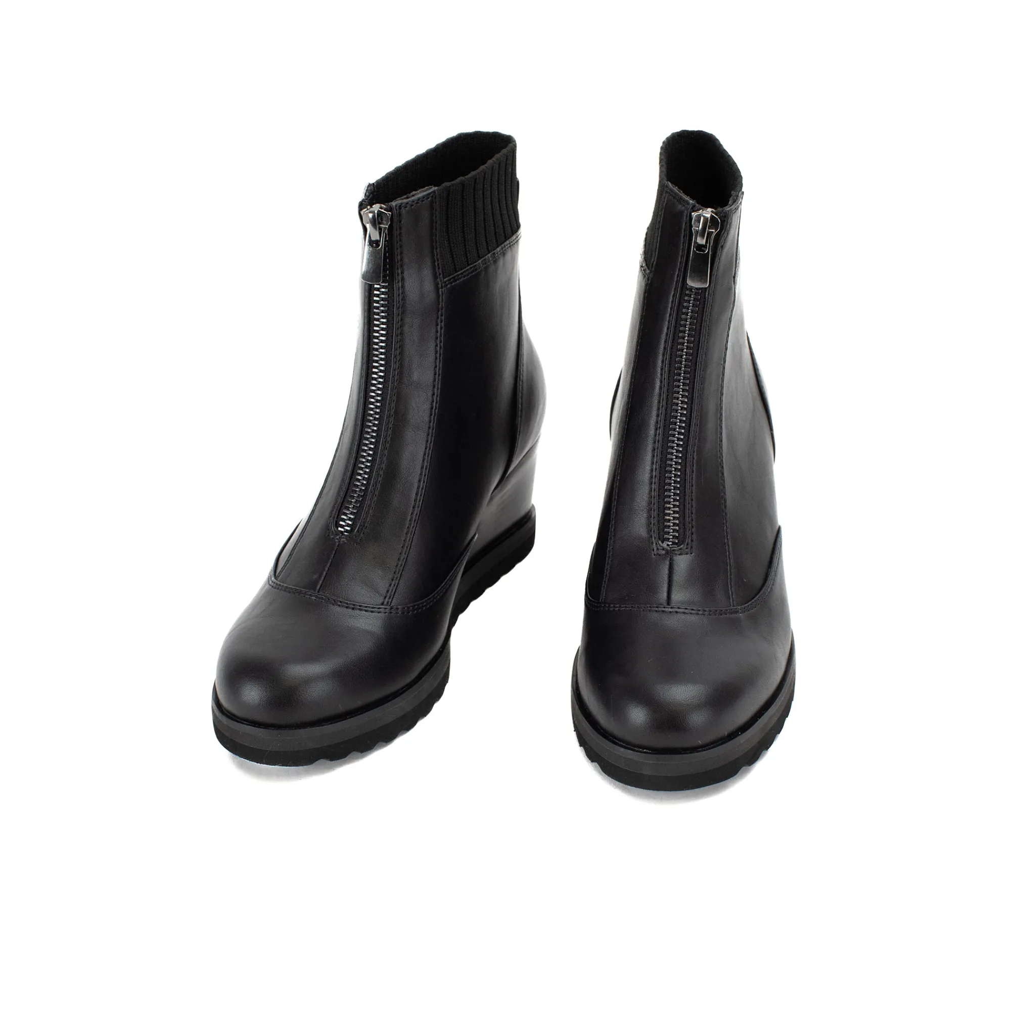 Zip-It Up In These Round-Toe Wedge Boots, With A Stretchy Knit Collar For Comfort And Fit.
