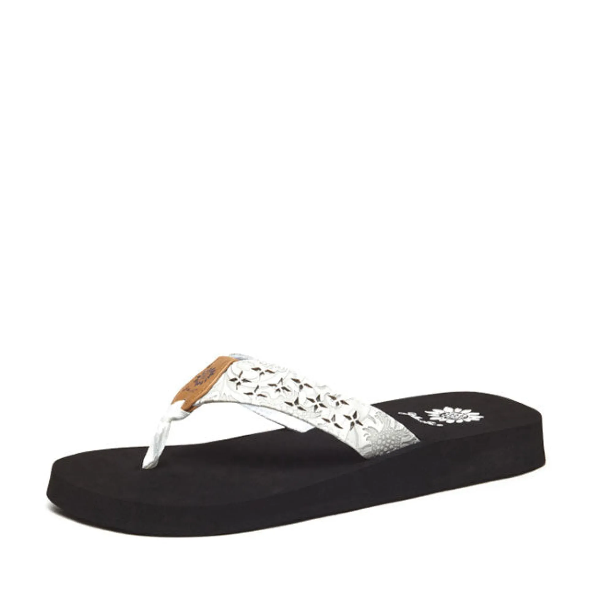 This Casual Sandal Features An Embossed Western-Pattern Strap With Laser Cuts Design.1″ Heel Height0.5″ Platform HeightE…