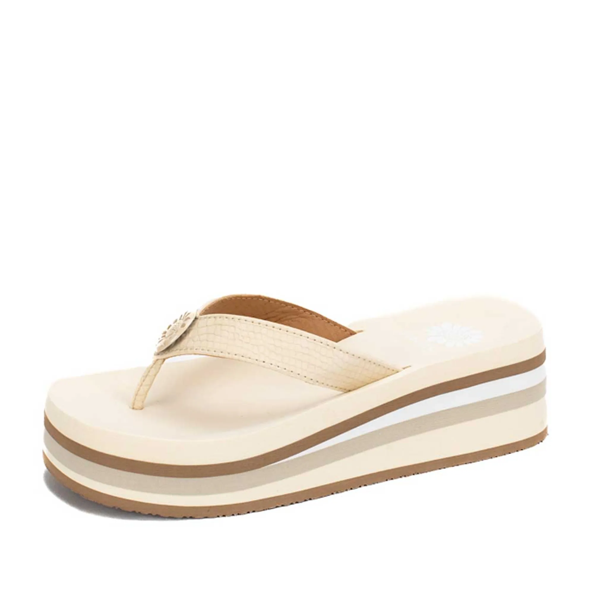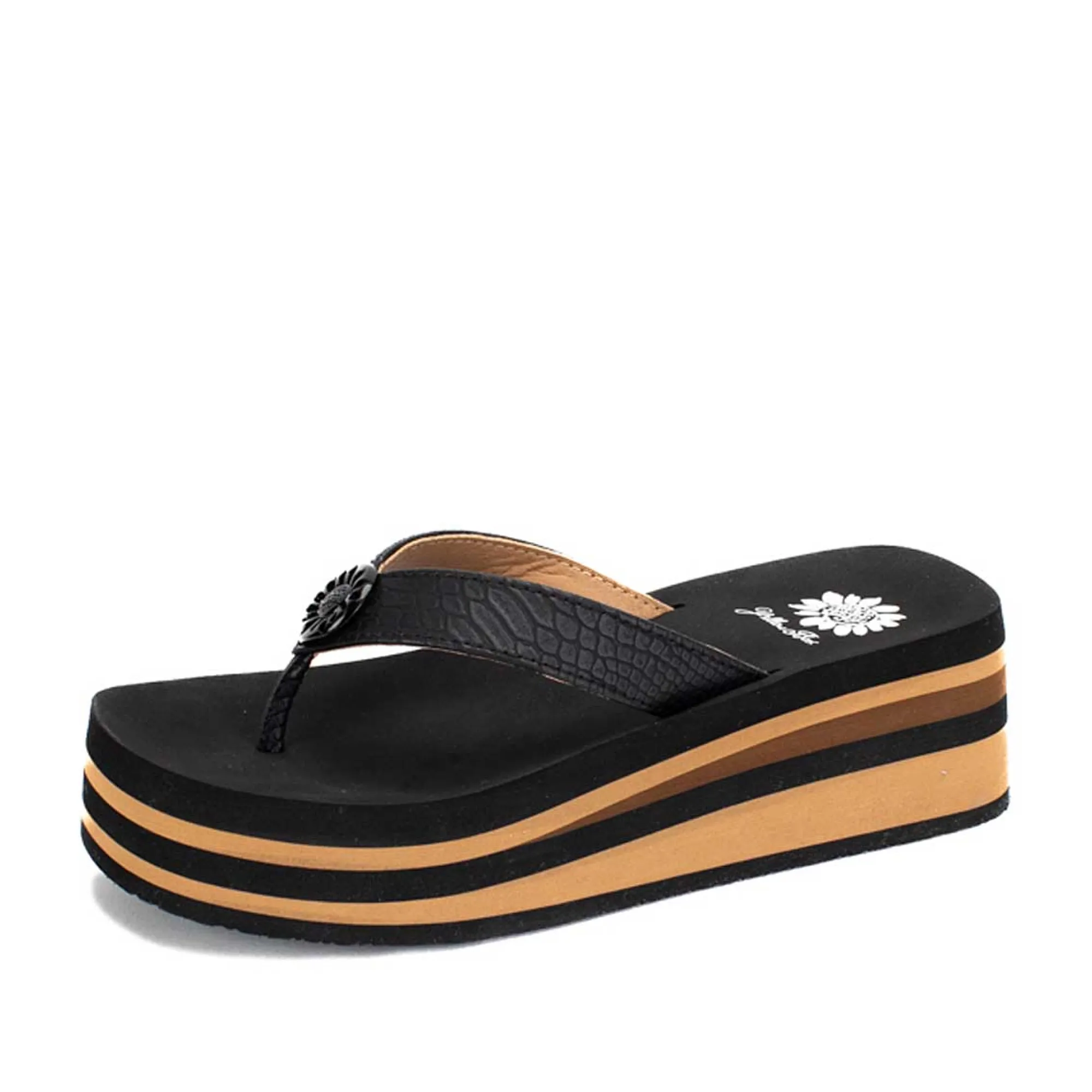 Update Your Platform Game In These Retro Striped Thong Sandals.2.25″ Heel Height1.5″ Platform HeightSignature Yellow Box…