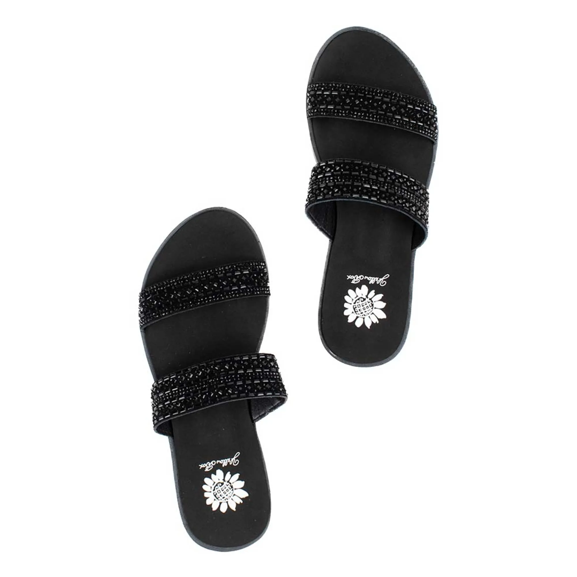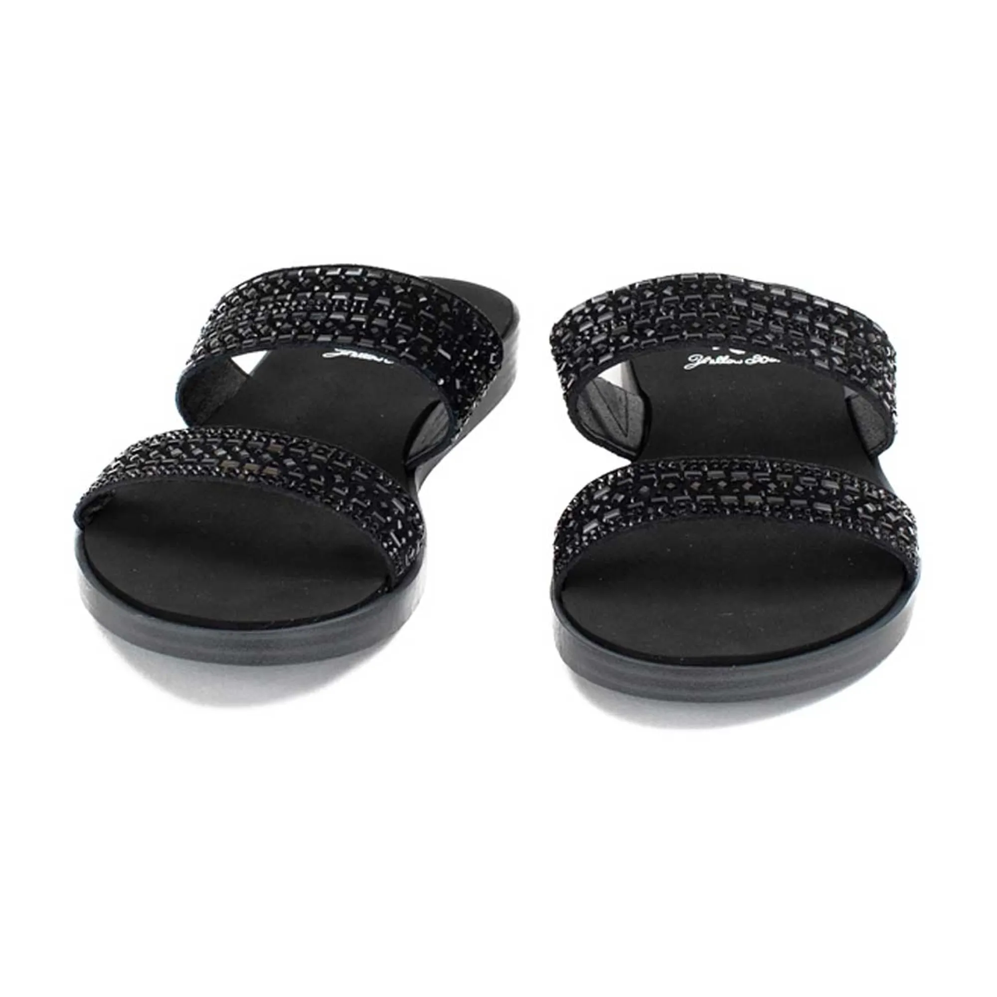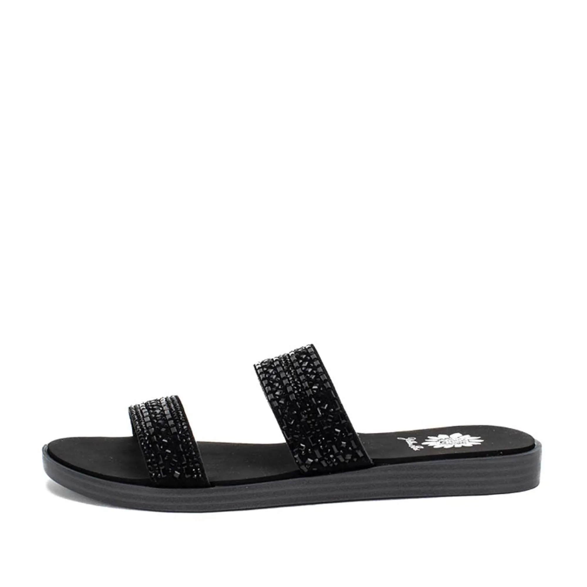 Shimmer As You Step With The Delfie Slip-On Sandals. These Easy Slide Sandals Have A Comfortable Padded Footbed, And Are Adorned With Geo-Shaped Rhinestones For Eye-Catching Style. These Double-Banded Sandals Look Great Paired With Dresses, Shorts, Or Jeans!