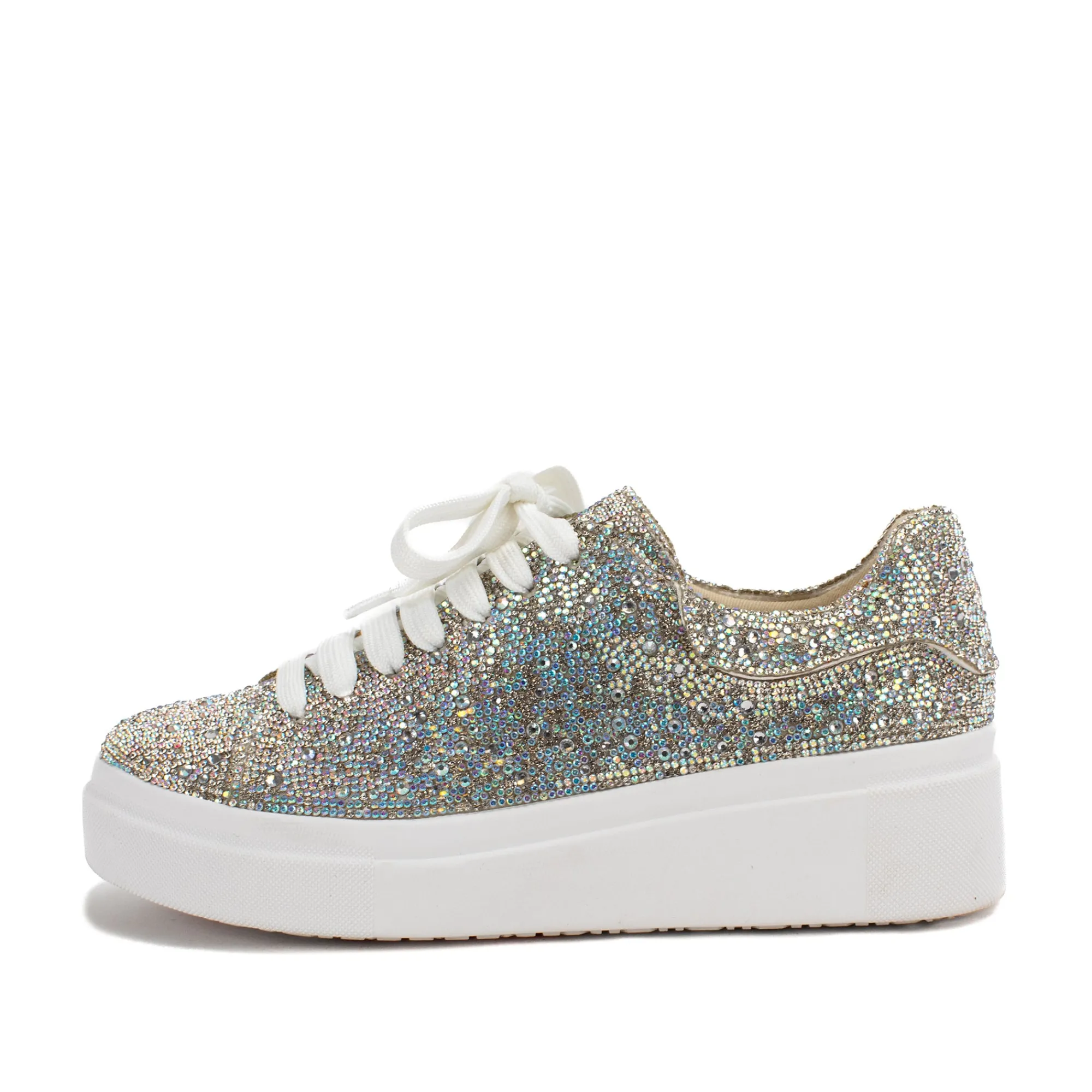 Stun The Crowd In These Show-Stopping Sneakers. The Eraya Flatforms Are Bejeweled To Every Edge In Iridescent Crystal Jewels. We Love This For Bridal Parties, On-Stage Spotlights, Or Hey, Even Everyday!
