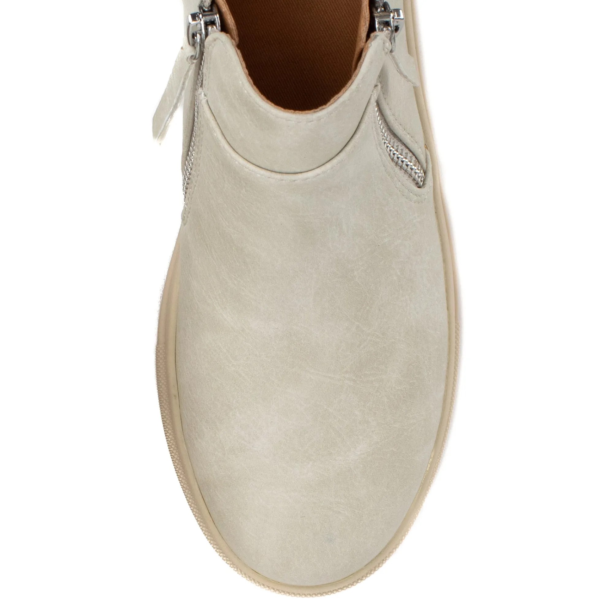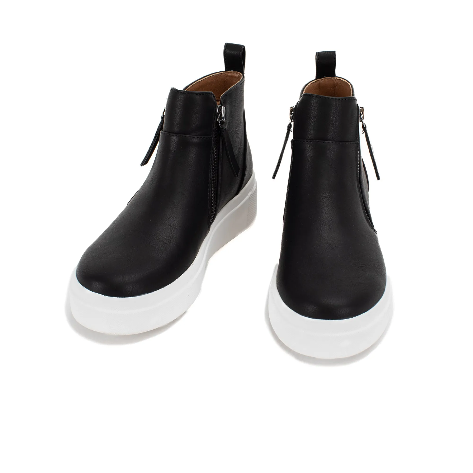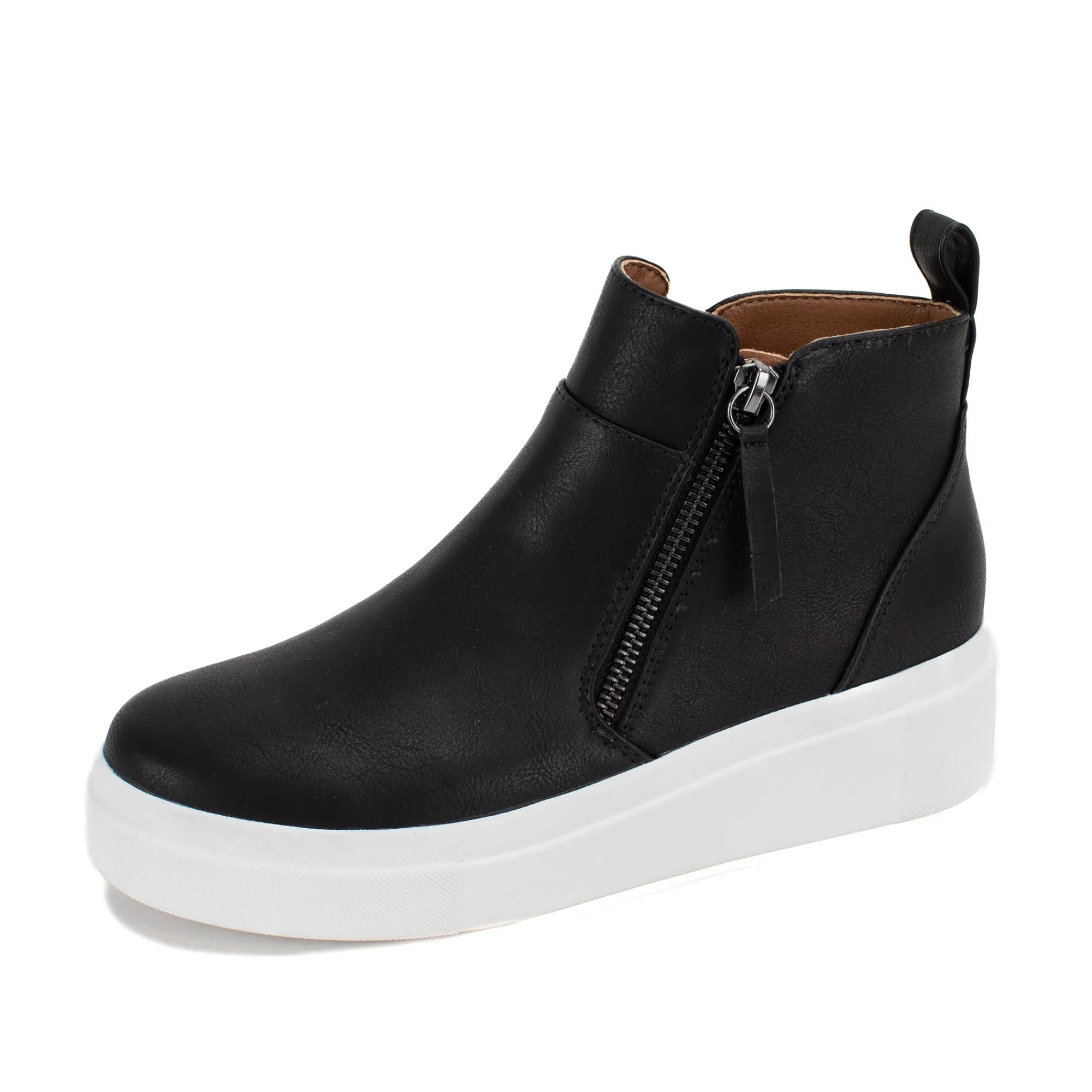 Update Your Sneaker Looks With A High-Top Zip-Up.2″ Heel Height1.25″ Platform HeightFaux Leather UpperRubber Outsole